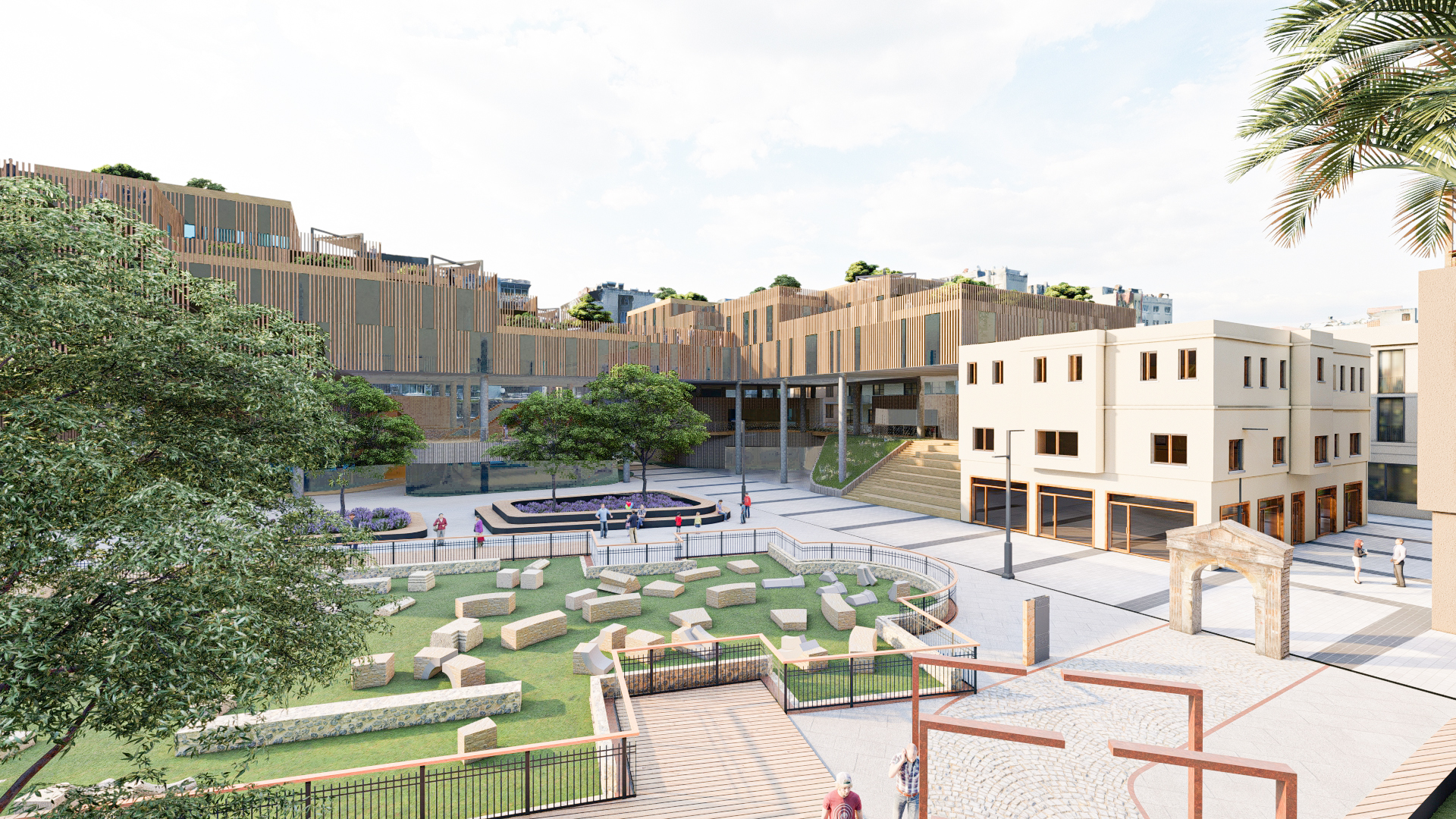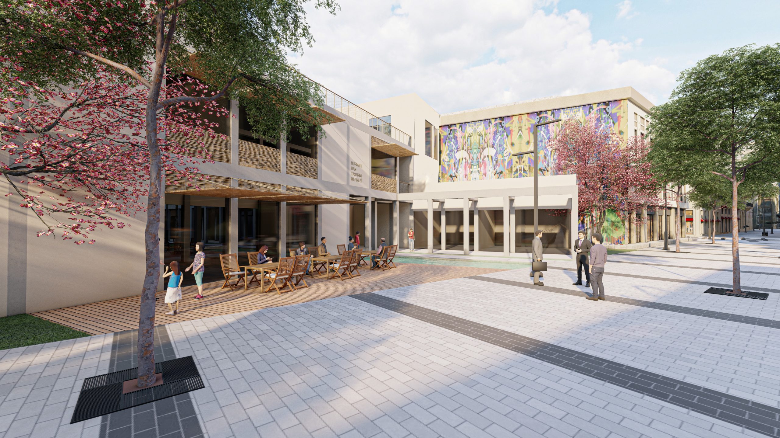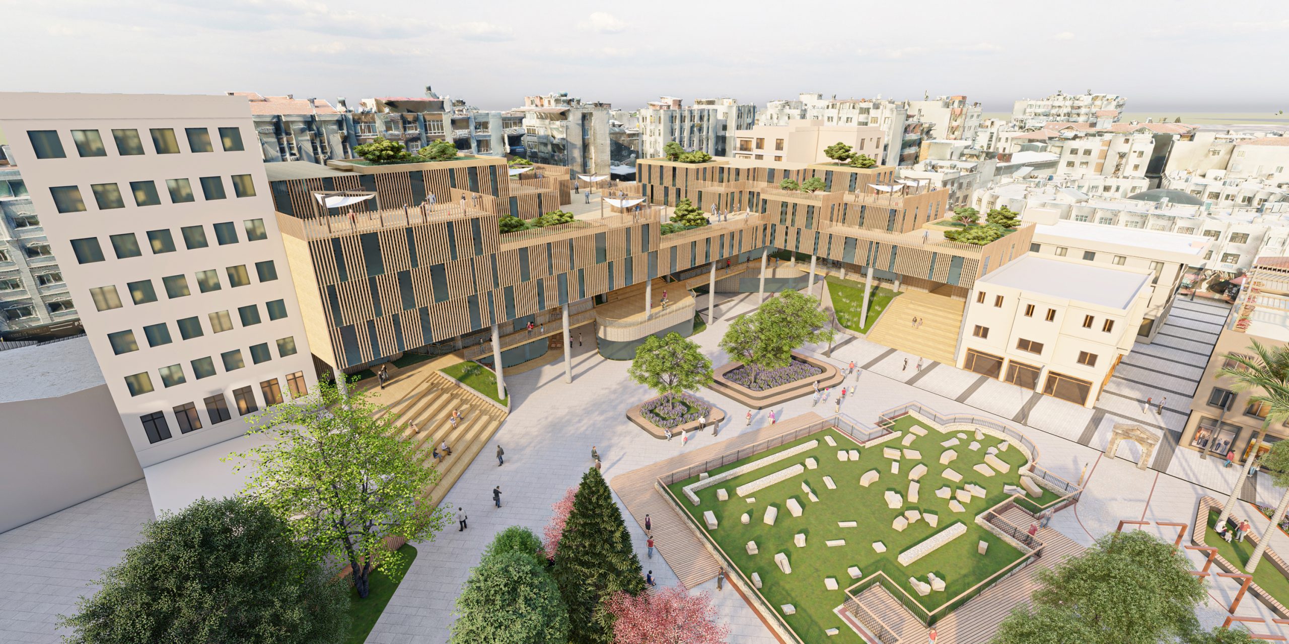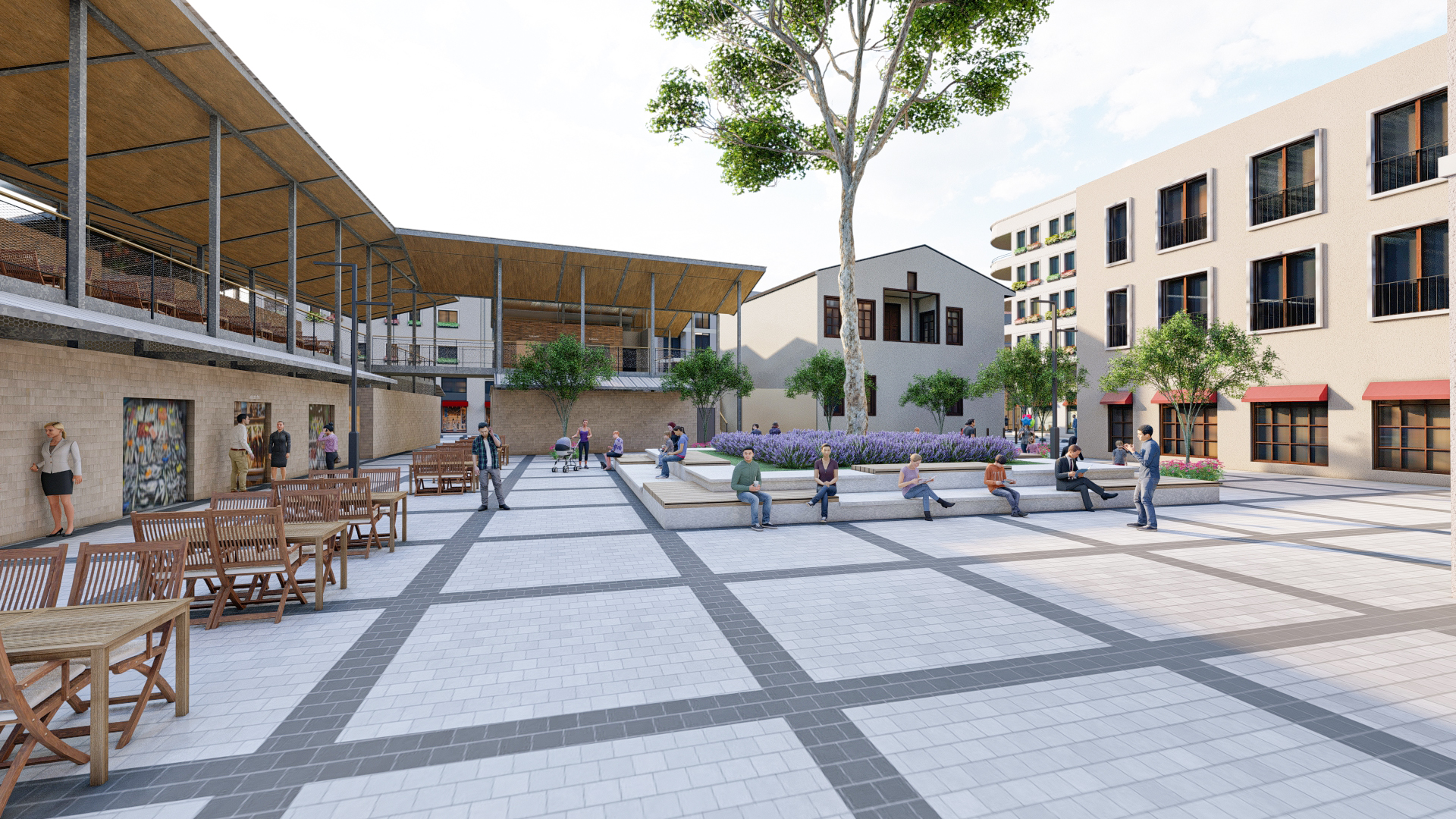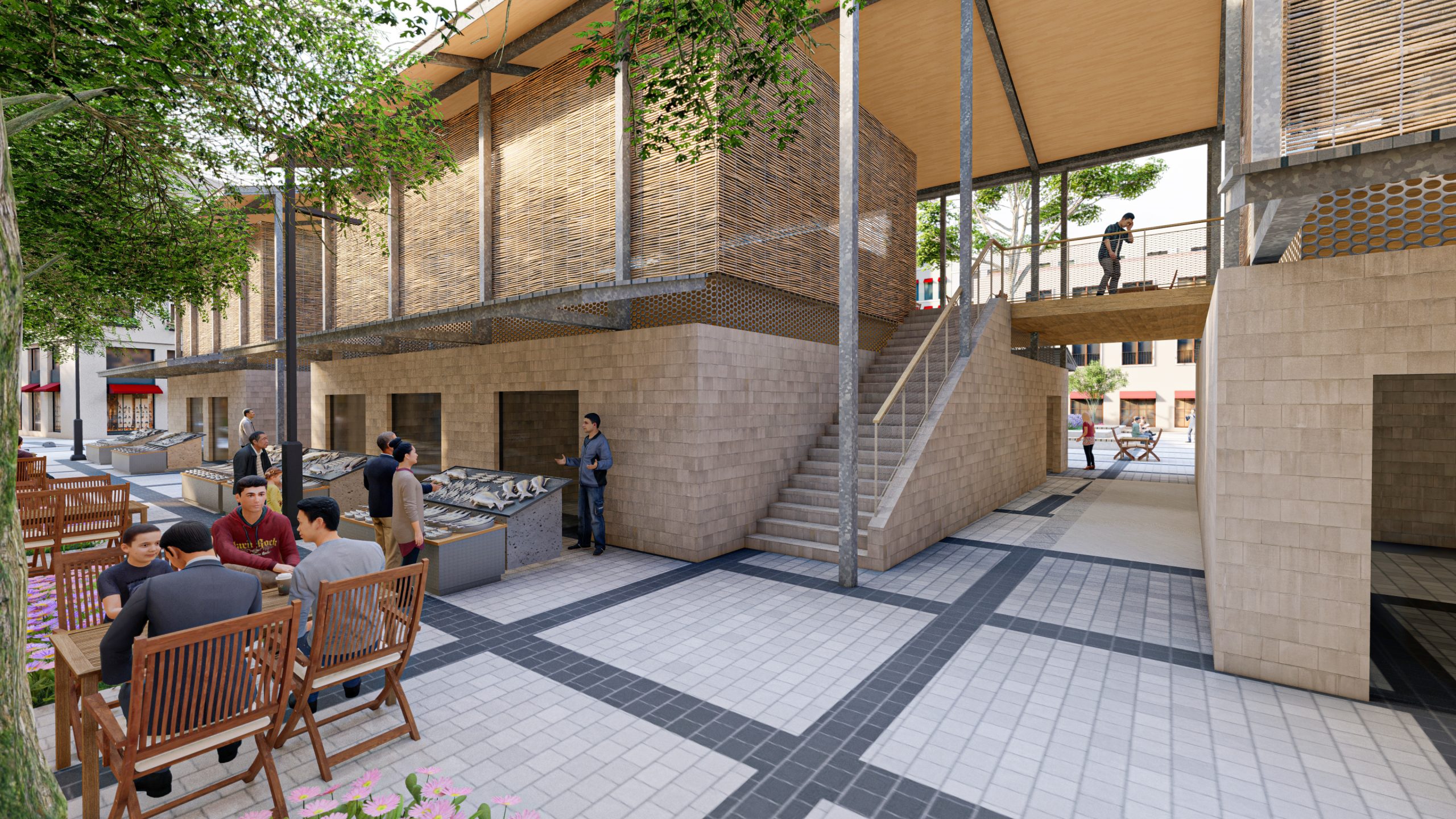 The Cultural Center & Business Hub fuses historic textures with contemporary needs, offering an open and inviting urban space.