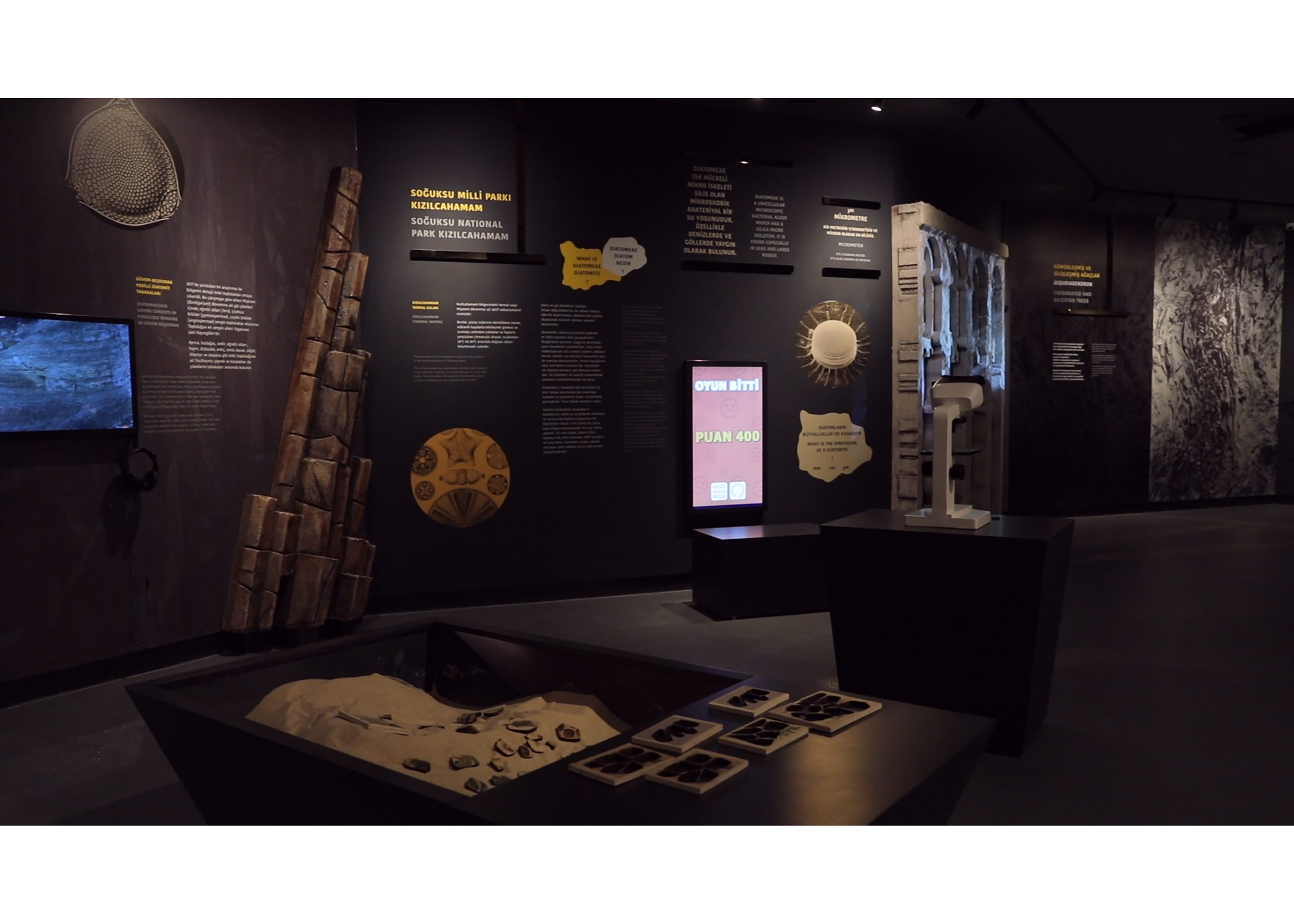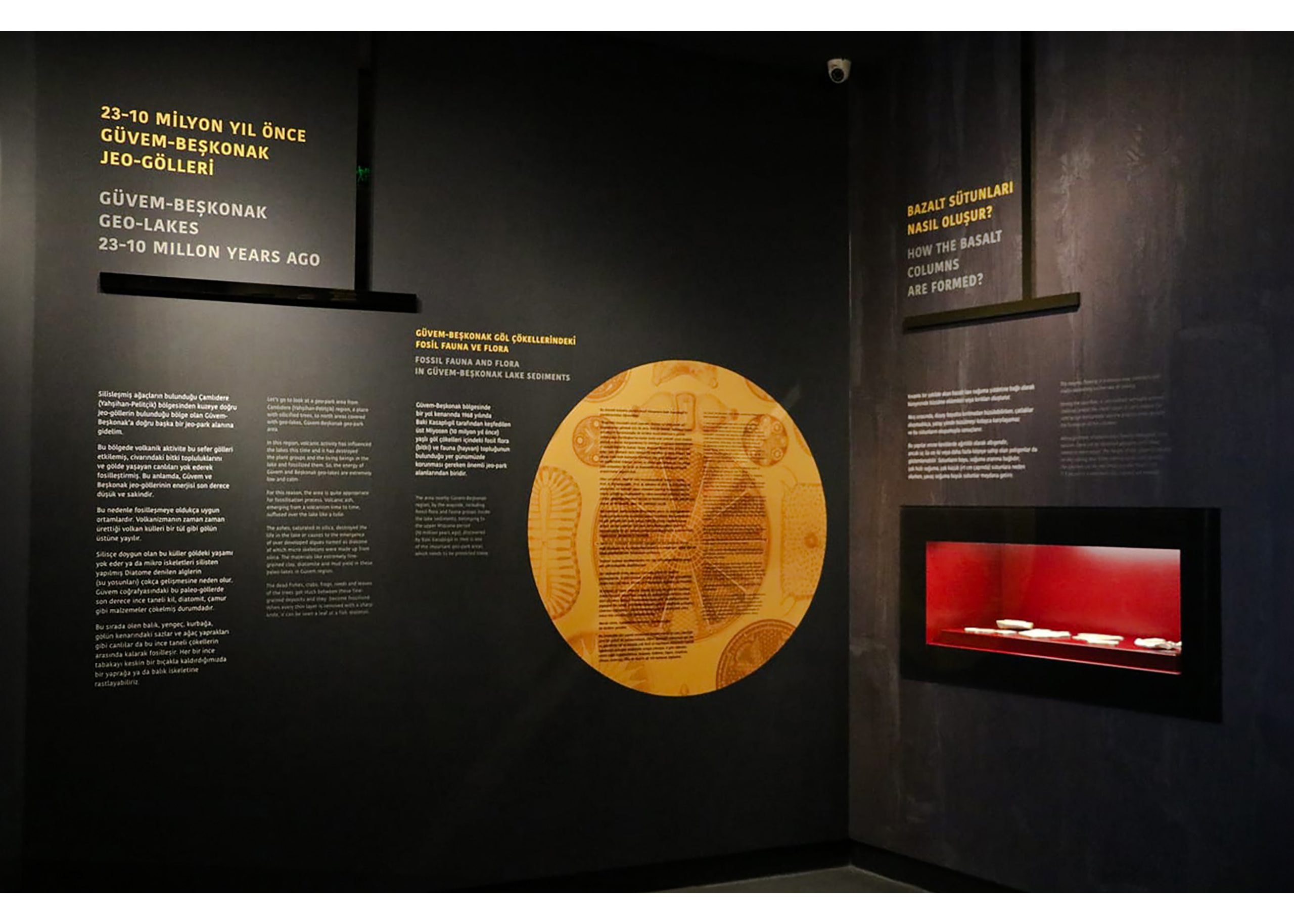 Bütün bu temalar çeşitli ziyaretçi gruplarına hitap edecek şekilde farklı sergileme unsurlarıyla tasarlandı. Fosiller nem, ısı ve ışık kontrollü vitrinlerde sergilendi. Grafik tasarımlar, yerleştirmeler ve videolar ekibimiz tarafından yapıldı. Kum havuzu, dokunmatik ekranlar, grafik tasarımda özel alanlarla çocukların etkileşiminin kuvvetlenmesi amaçlandı.